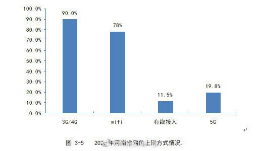 《2020年河南省互联网发展报告》显示,截至2020年底,河南省网民使用3G/4G上网的网民仍然最多,占比达到90%,使用5G网络上网的网民占比19.8%,占比不到两成。