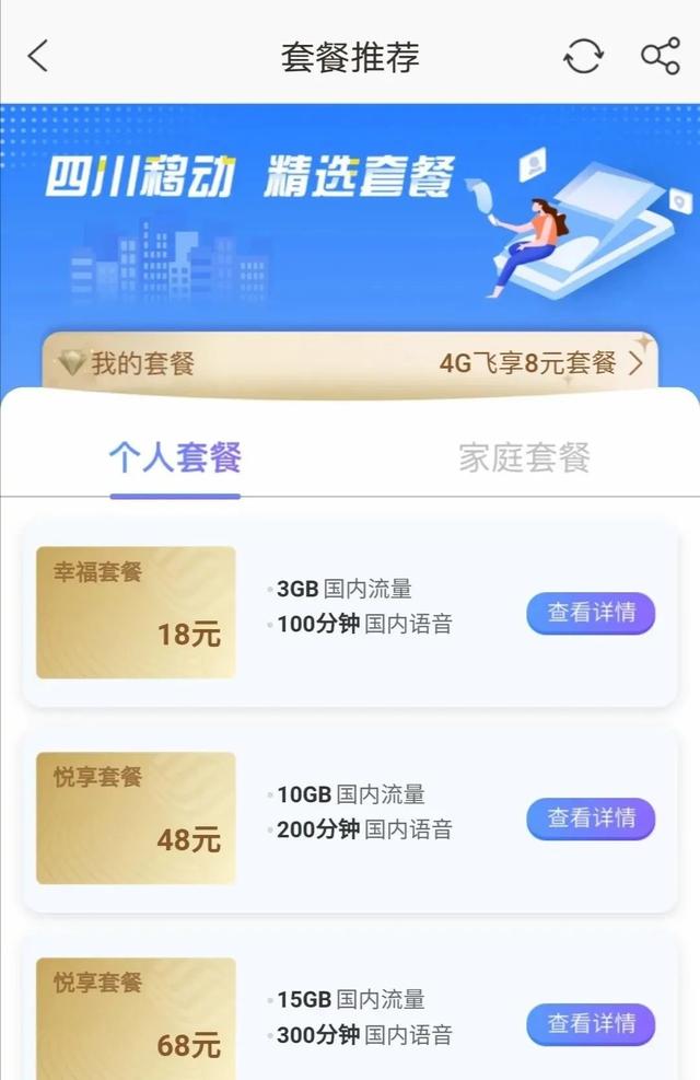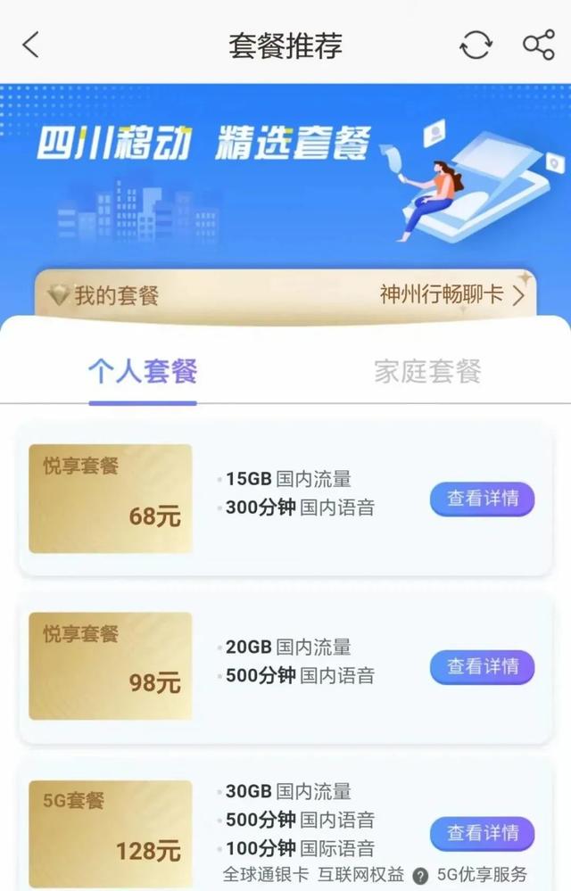 坐标四川省广汉市,前几天分别用两个手机号码登录了中国移动掌上营业厅,看到的业务套餐价格完全不一样!