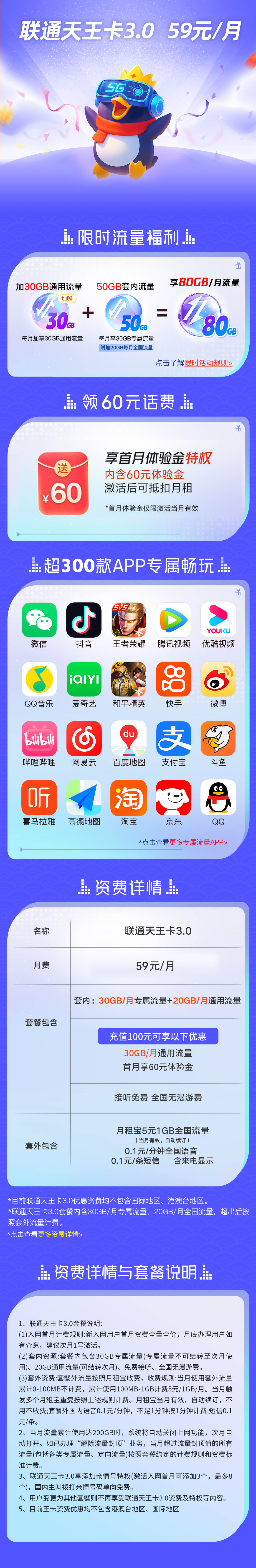 联通天王卡59元80G
